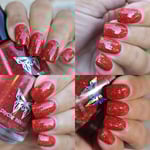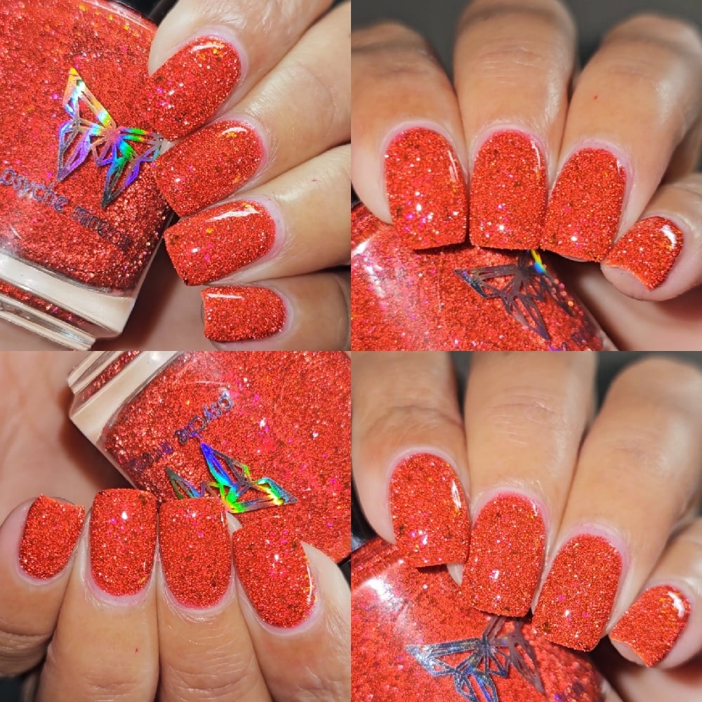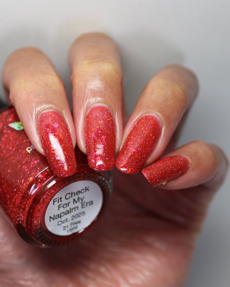 Fit check for my Napalm Era - an orange red jelly loaded with red reflective glitter and iridescent orange/red flakes. Similar to Clifford (Oct. HHC), but definitely different.