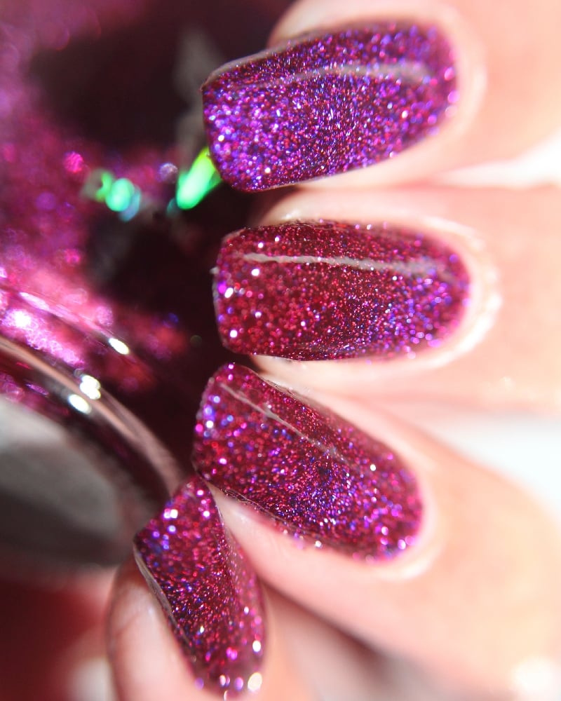 I Wanted to Set you Free (magnetic) - a deep magenta jelly loaded with pink reflective glitter and a shimmery blue magnetic pigment.